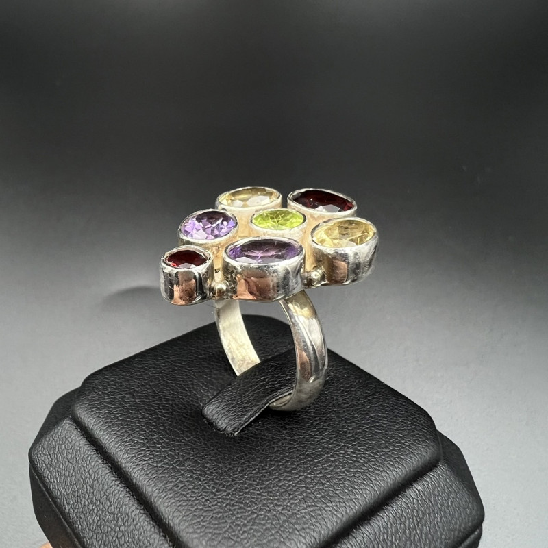 Excellent Natural Multi Stones Ring with Silver Handmade