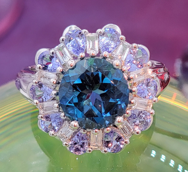 YOURGIFTSTOP PRESENTS A FANCY COCKTAIL RING! THIS LARGE SIZED RING OFFERS THE MOST BEAUTIFUL LARGE LONDON BLUE TOPAZ SURROUNDED BY TANZANITE AND WHITE TOPAZ IN FINE STERLING SILVER 925. THE DESIGN OF THIS RING IS REALLY STUNNING!